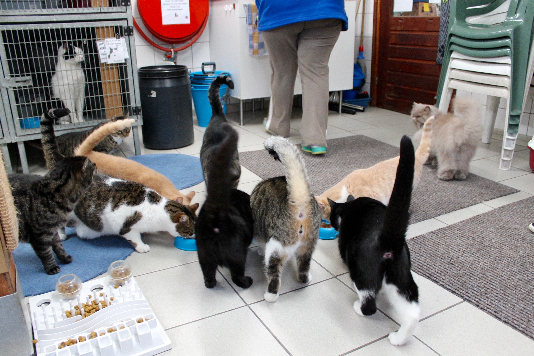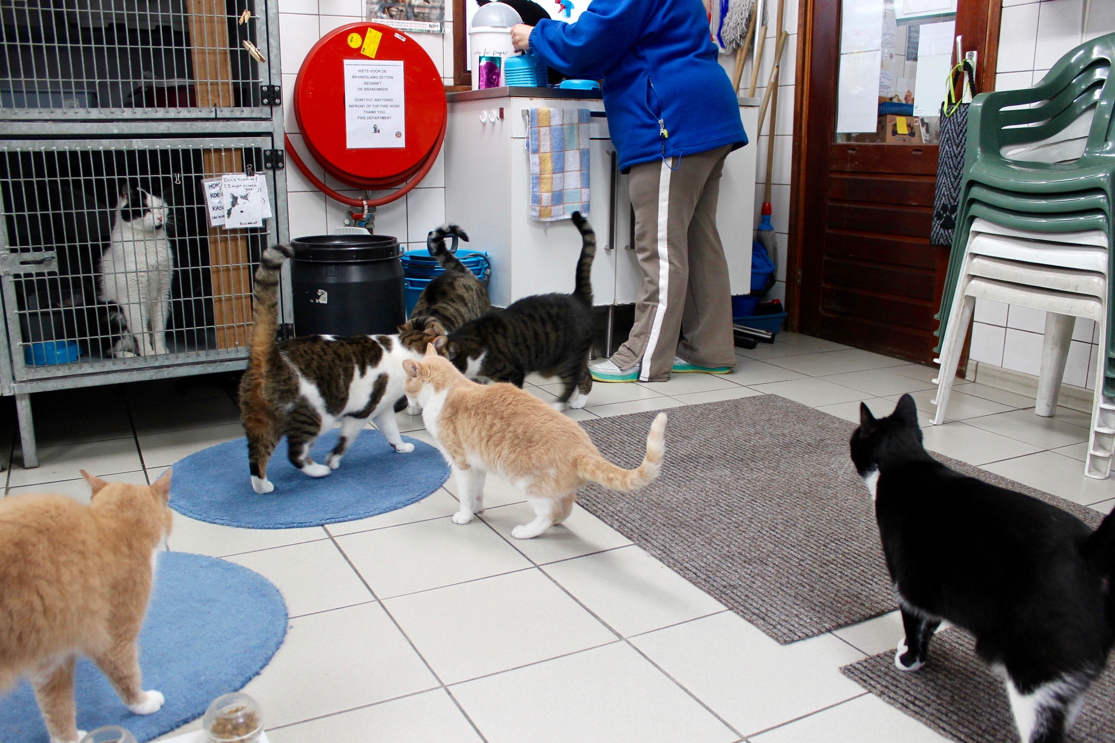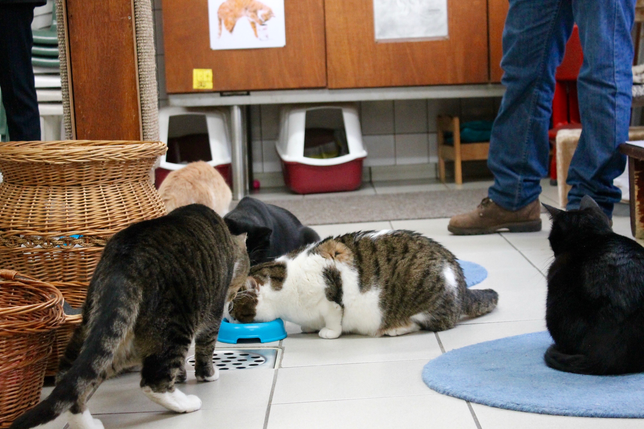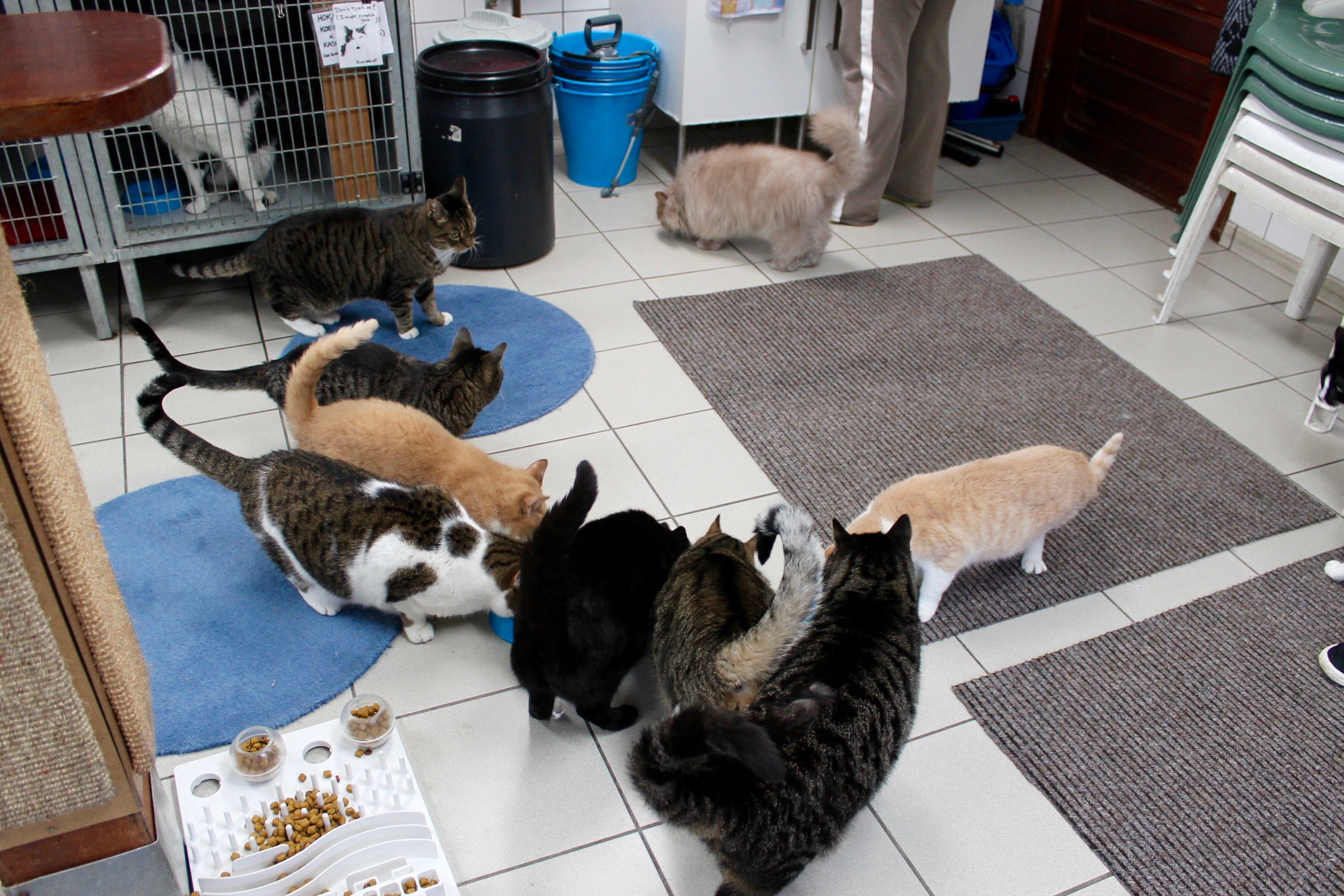 Me llamo mucho la atención lo bien organizado que está todo, tiene una buena higiene y no hay un exceso de gatos. Cada gato tiene su cama y su caja de deposiciones, que por cierto, no utilizan arena sino papel periódico. Yo solo imaginaba colocándole papel a Maggie y ésta llorándome que le devolviera su arena jejejeje